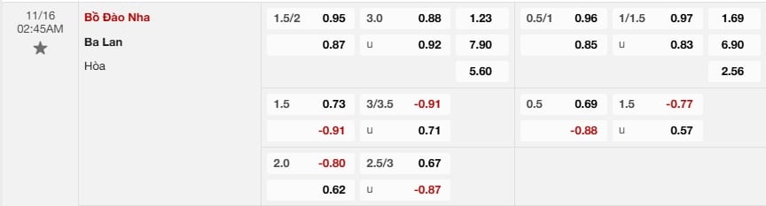 Tỷ lệ kèo Bồ Đào Nha vs Ba Lan