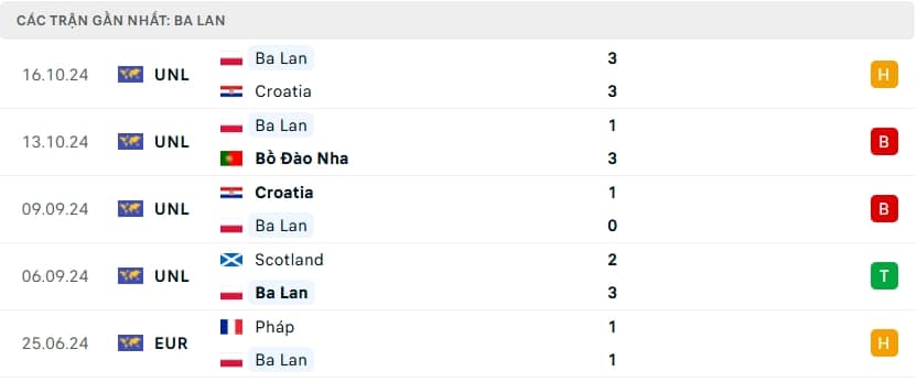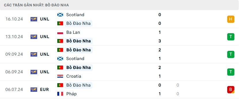 Phong độ gần đây Bồ Đào Nha vs Ba Lan