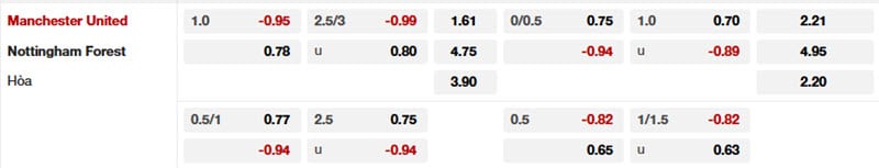 Bảng tỷ lệ kèo Man Utd vs Nottingham