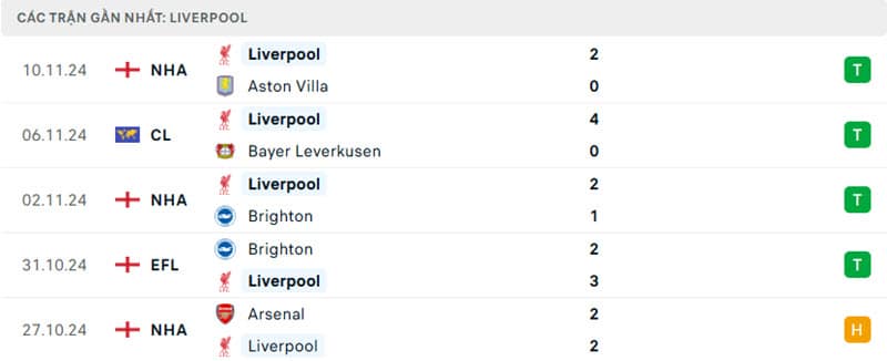 Liverpool đang có chuỗi 4 chiến thắng liên tiếp trên mọi đấu trường sau trận hòa 2-2 trên sân Arsenal.
